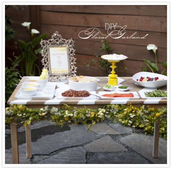 We thought we’d end the week with a sweet tutorial on making your own floral garland. Remember that cute brunch we posted from Local Social? They’re back to share the garland they made for their buffet table. Yay. We’re going to let them lead with the instructions. Here goes:
